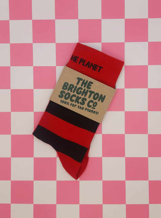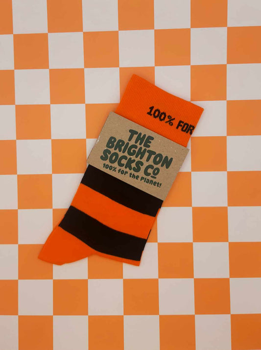Make a statement with our stripy socks; for your feet and 100% for the Planet!